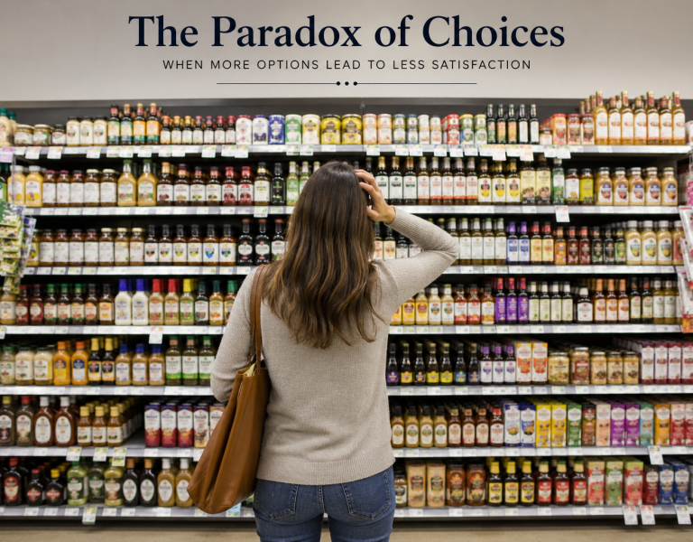 Picture this: You walk into a grocery store looking for jam. Instead of the three or four varieties you expected, you're confronted with 24 different options. Strawberry, raspberry, blueberry, mixed berry, organic, sugar-free, artisanal, imported... The shelves blur together. Ten minutes later, you walk out empty-handed, overwhelmed and strangely exhausted. This isn't just about jam. This is about one of the most counterintuitive findings in modern psychology: more choice can actually make us less happy. The Jam Study That Changed Everything In 2000, psychologists Sheena Iyengar and Mark Lepper conducted what would become one of the most famous experiments in behavioral science. They set up a tasting booth in a California grocery store, alternating between displaying 24 varieties of jam and just 6 varieties. The results were striking. While the larger display attracted more attention (60% of shoppers stopped to look versus 40% for the smaller display), the smaller selection led to dramatically more purchases. Only 3% of people who
