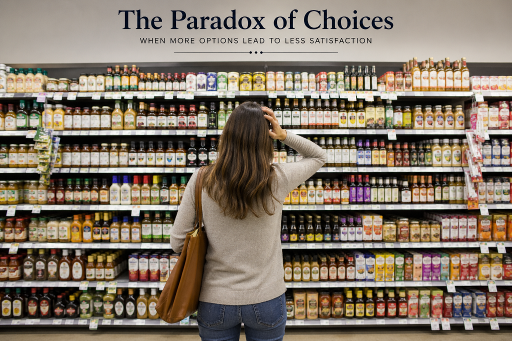 Picture this: You walk into a grocery store looking for jam. Instead of the three or four varieties you expected, you’re confronted with 24 different options. Strawberry, raspberry, blueberry, mixed berry, organic, sugar-free, artisanal, imported… The shelves blur together. Ten minutes later, you walk out empty-handed, overwhelmed and strangely exhausted.